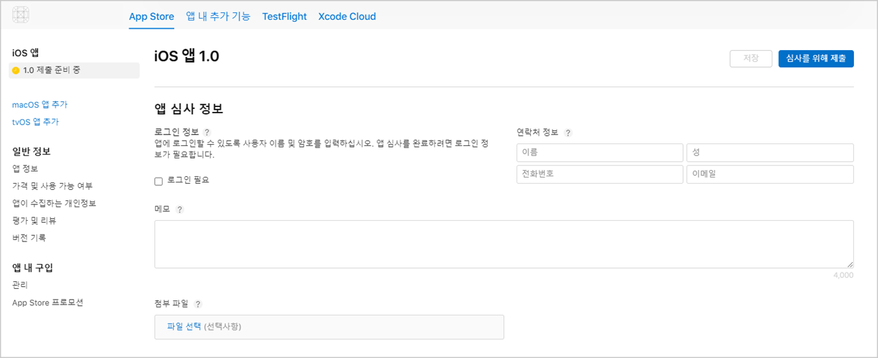 Appstore의 경우 다음의 항목을 입력하여 진행