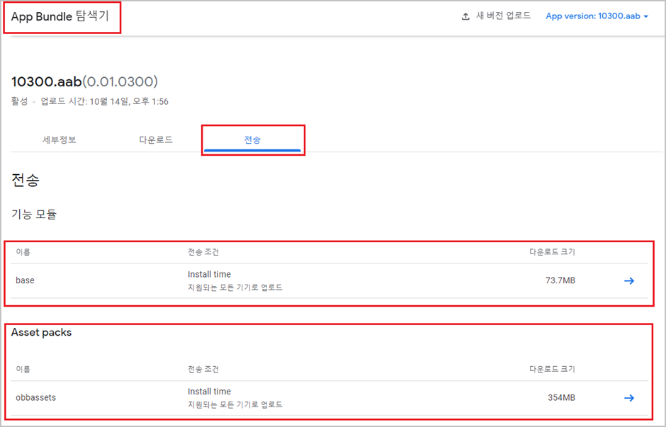 aab가 제대로 업로드 되었는지 확인을 하려면 좌측 메뉴 중 'App Bundle 탐색기'를 선택 후