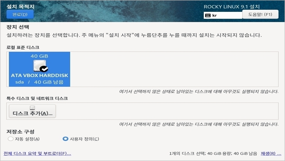 설치 목적지는 Disk 및 파티션을 설정하는 메뉴입니다.