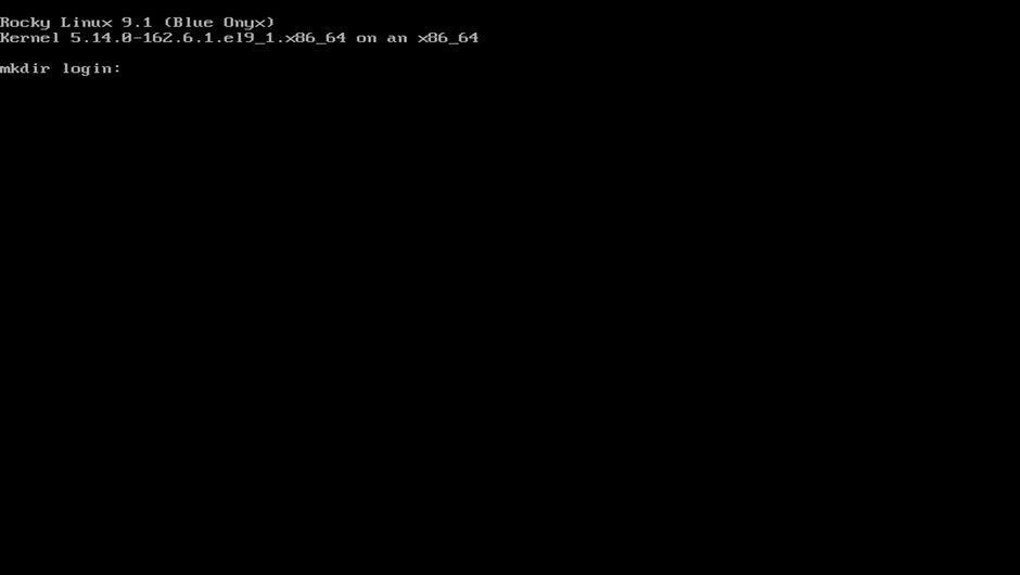 재부팅이 완료되면 로그인 콘솔 창에서 Rocky Linux 9.1 버전이라는 것과 5.14.0-162.6.1 버전의 Kernel 을 사용하고 있다는 것을 확인할 수 있습니다.