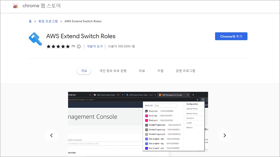 AWS 운영을 담당하고 있고, 여러 개의 계정을 관리하고 있을 경우 유용하게 사용할 수 있는 Chrome Extension 입니다. 특히나 Assume Role을 활용하고 있다면 클릭 한 번으로 계정을 왔다 갔다 할 수 있으니 꼭 한 번 사용해 보세요~