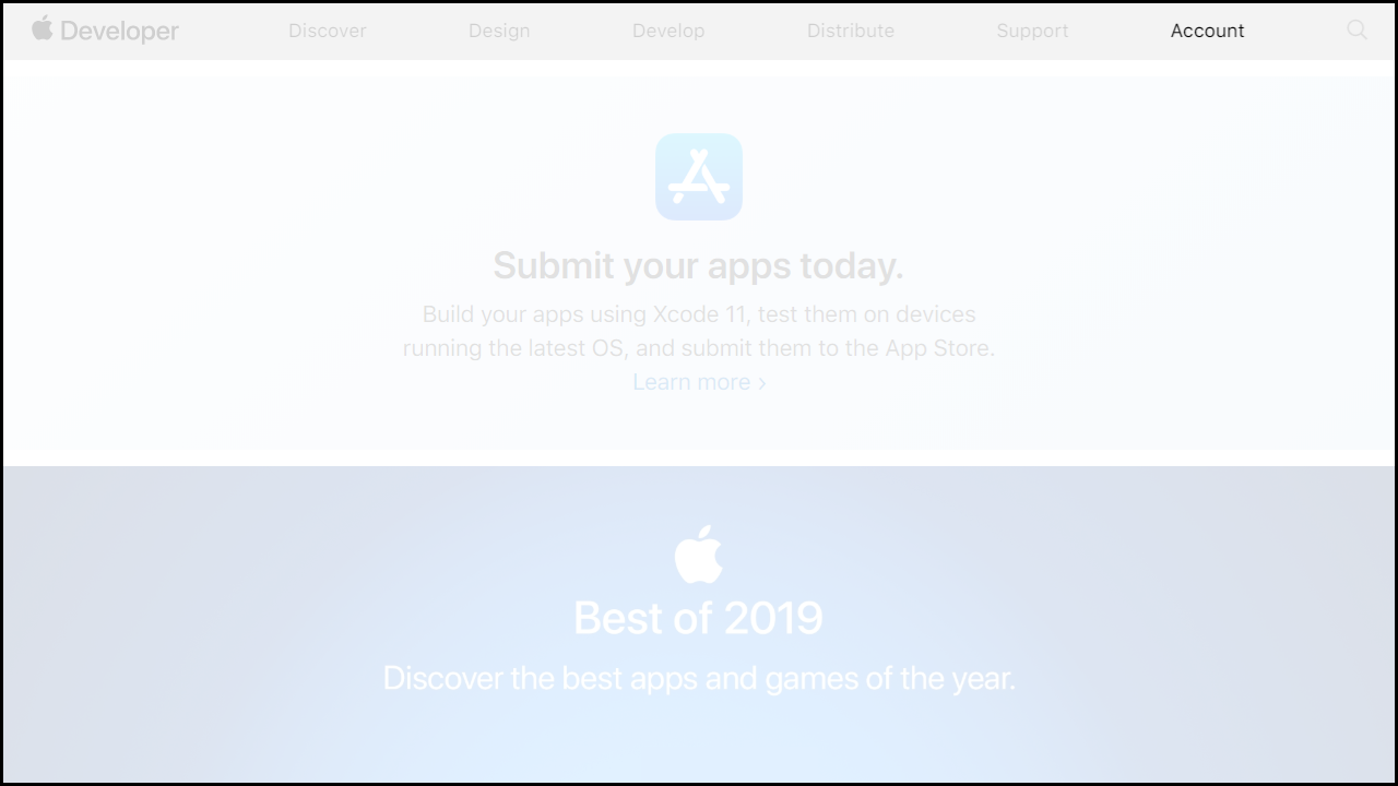https://developer.apple.com 페이지로 접속하면 위의 이미지와 같은 화면을 확인할 수 있습니다.