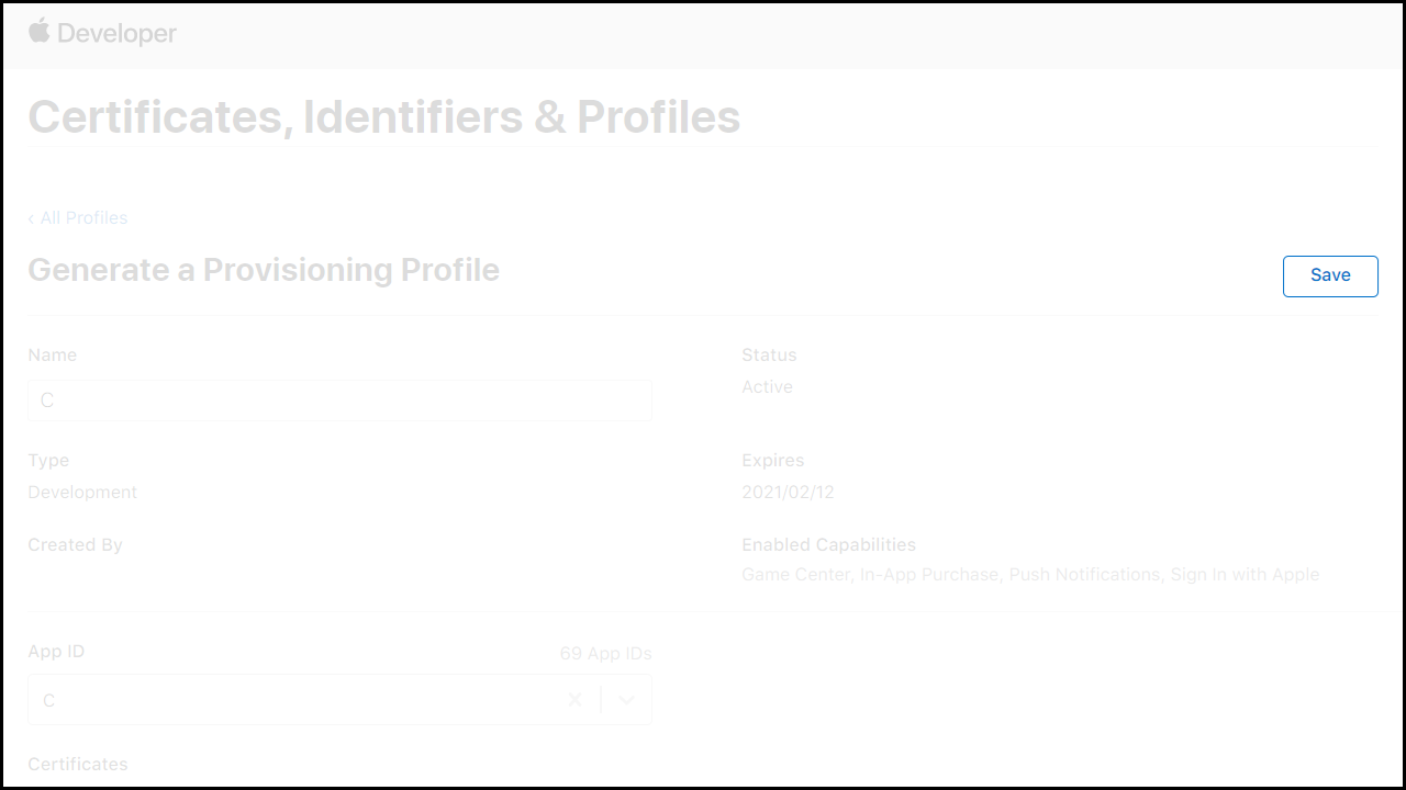 마지막으로 프로비저닝 이름을 변경하고 우측 상단의 ‘Save’를 클릭합니다. (이름을 변경하는 이유는 버전을 구별하기 위해서 이기 때문에 굳이 바꾸지 않아도 무방합니다.)