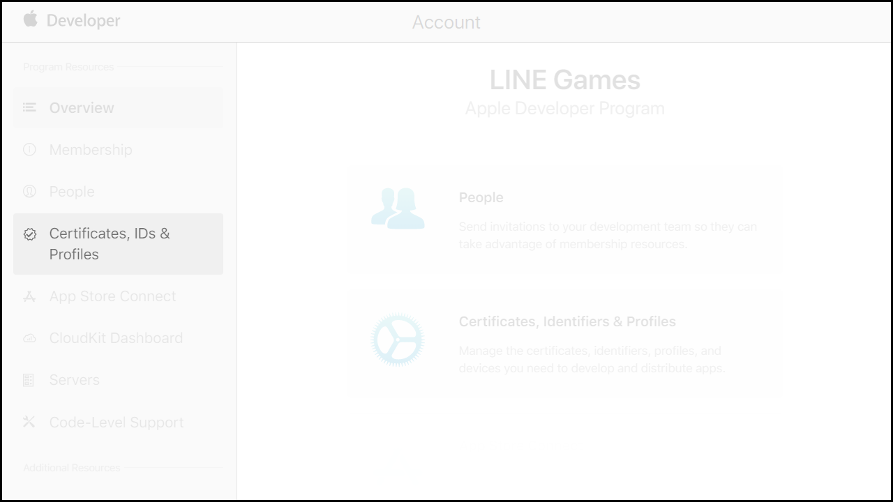 좌측 매뉴에서 ‘Certificates, IDs & Profiles’ 을 선택 합니다. (우측에 아이콘과 함께 나오는 매뉴를 클릭해도 됩니다.)