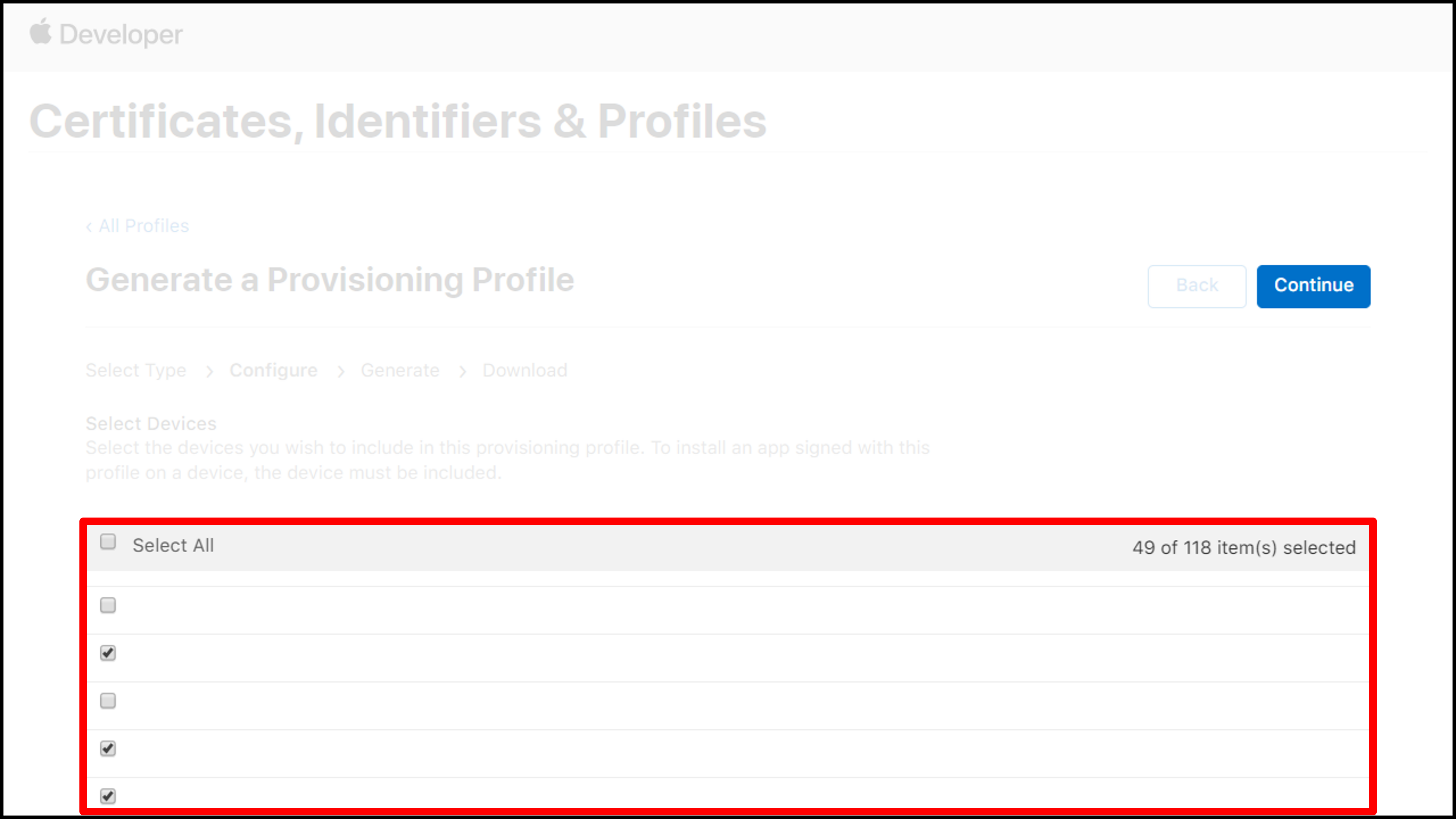 다음으로 Devices를 선택합니다. 선택된 Device에서만 설치가 가능하다는 점 참고하여 Device를 선택해 주세요.