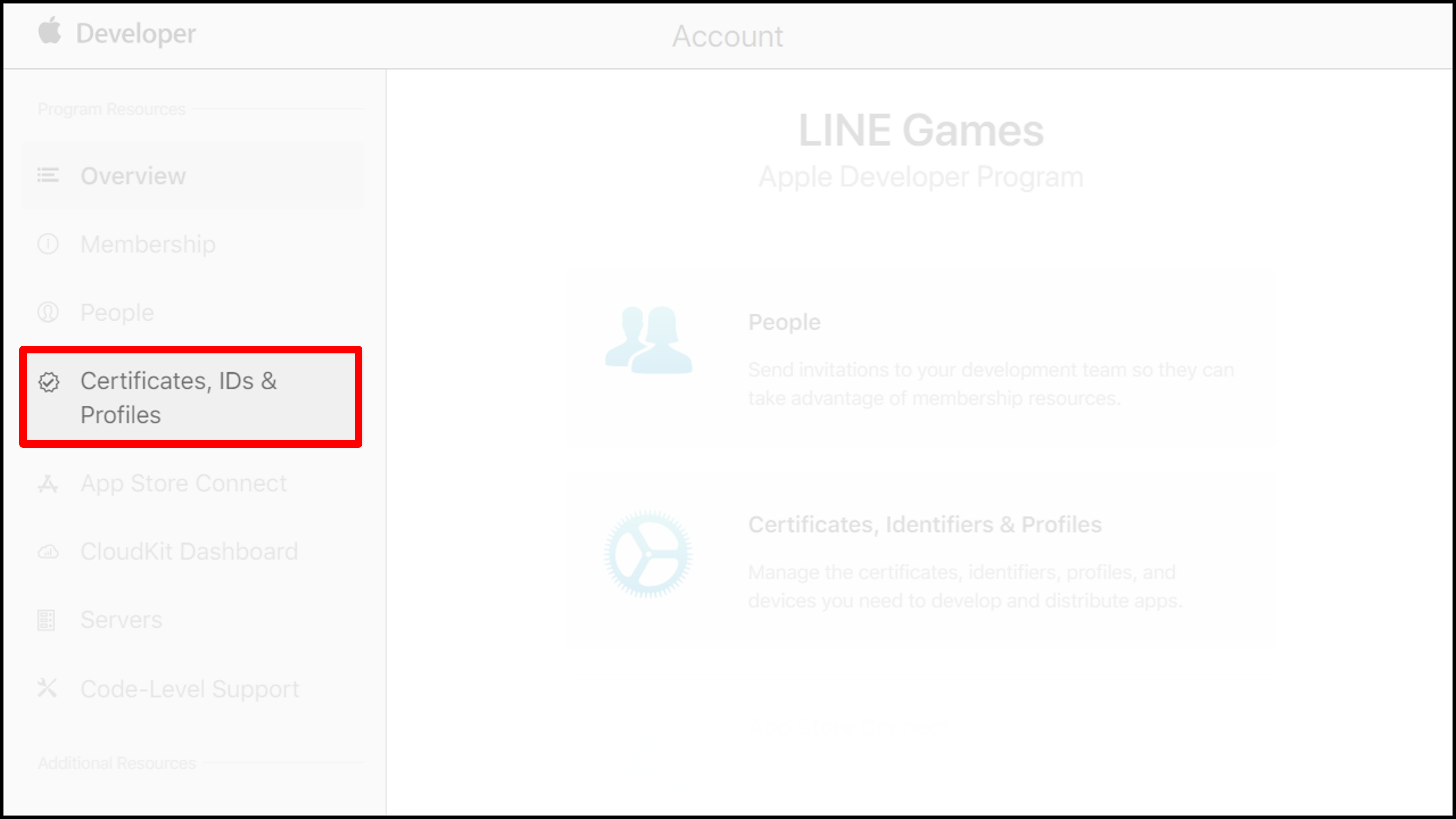 좌측 매뉴 혹은 우측에서 ‘Certificates, IDs & Profiles’를 클릭합니다.