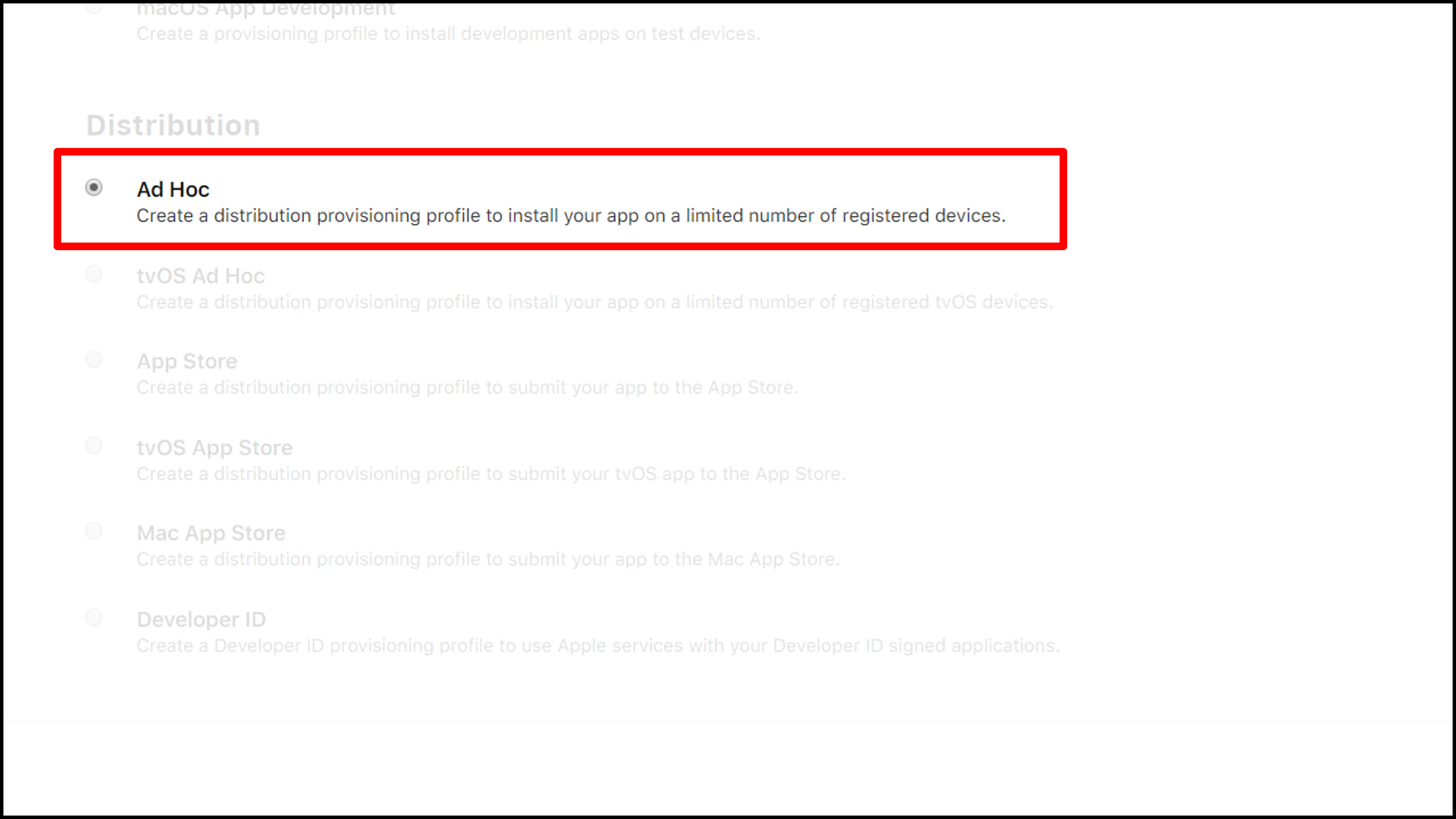 Distribution 항목에서 ‘Ad Hoc’을 선택합니다.