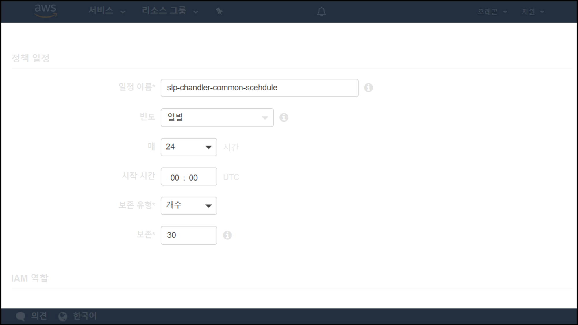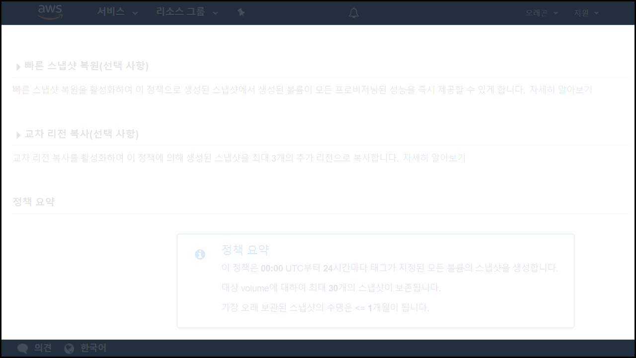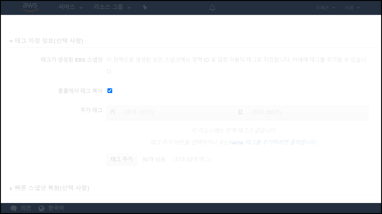 볼륨에서 태그 복사 항목은 ‘Snapshot의 Name을 백업 대상 이름’으로 하고 싶을 경우 체크하면 됩니다.
