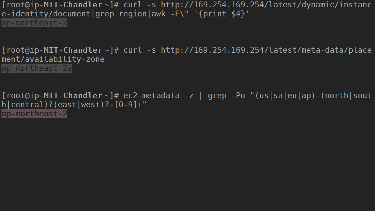 curl -s http://169.254.169.254/latest/dynamic/instance-identity/document|grep region|awk -F" '{print $4}'