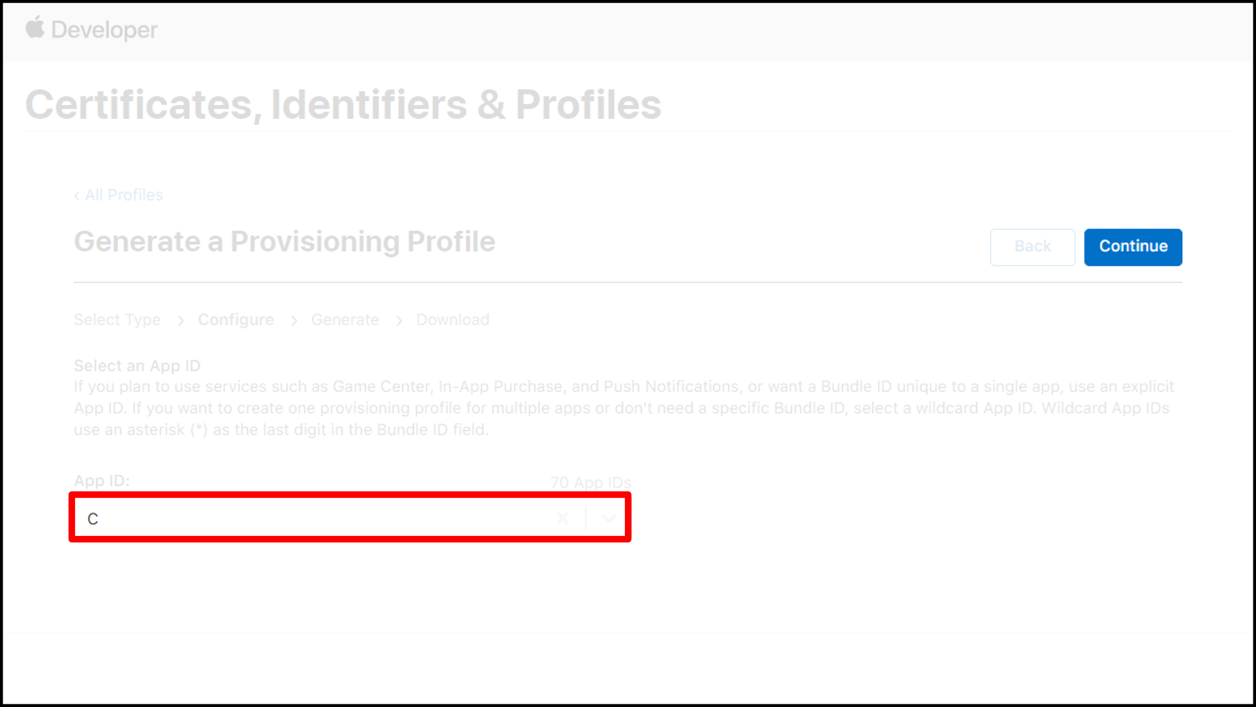 다음으로 App ID를 선택합니다. 드롭다운 메뉴이므로, 생성되어 있는 앱 중에서 선택하면 됩니다.