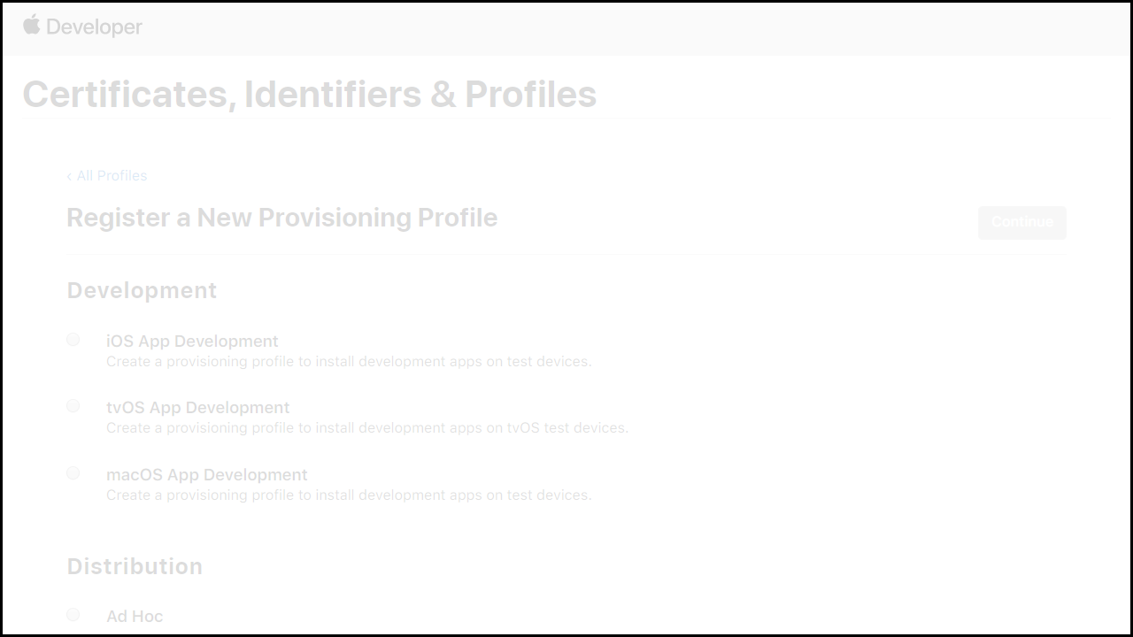 appstore는 배포용이기 때문에 Development 항목에서는 선택할 필요가 없습니다.