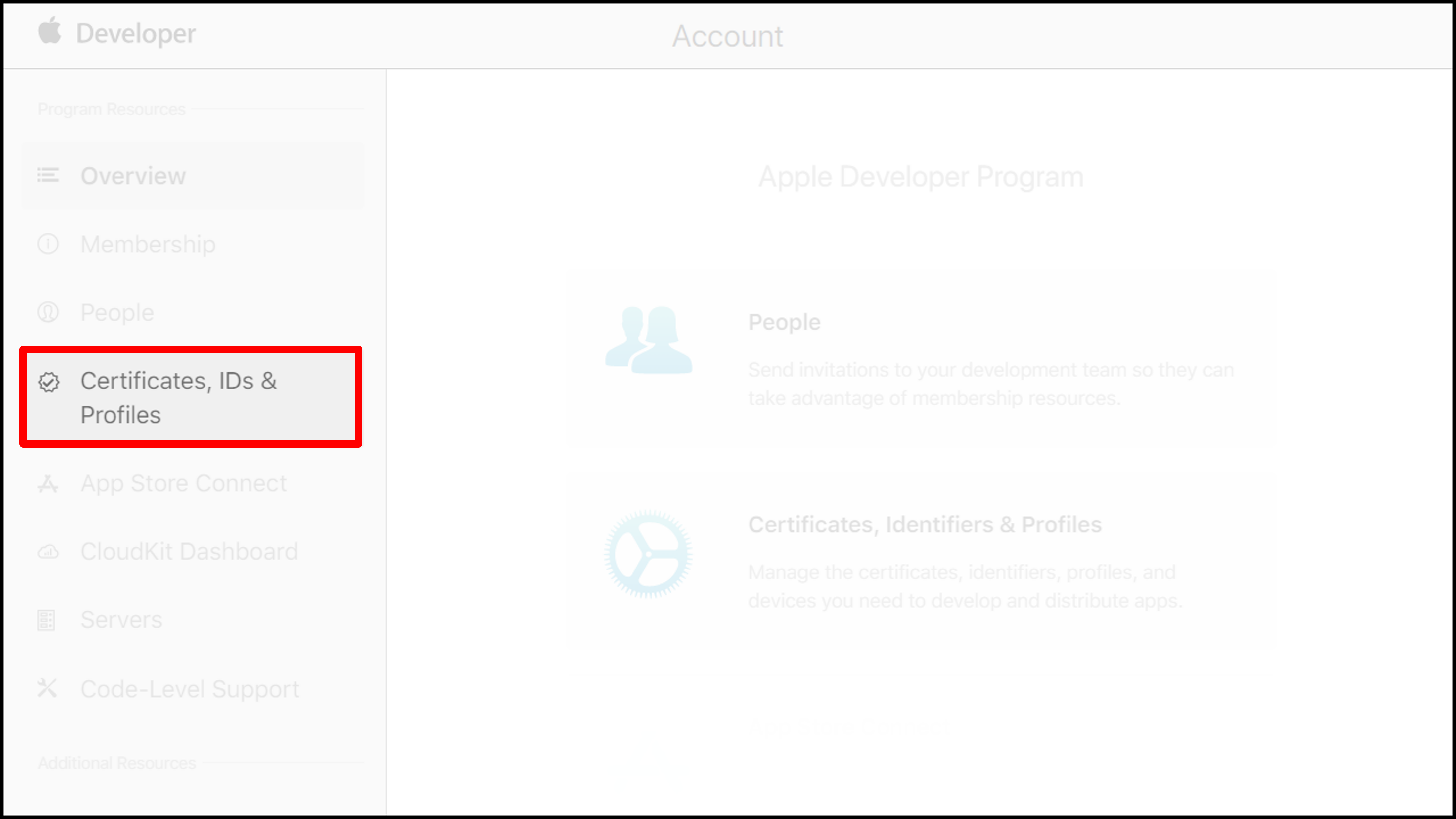 좌측 혹은 우측에서 ‘Certificates, IDs & Profiles’를 선택합니다.