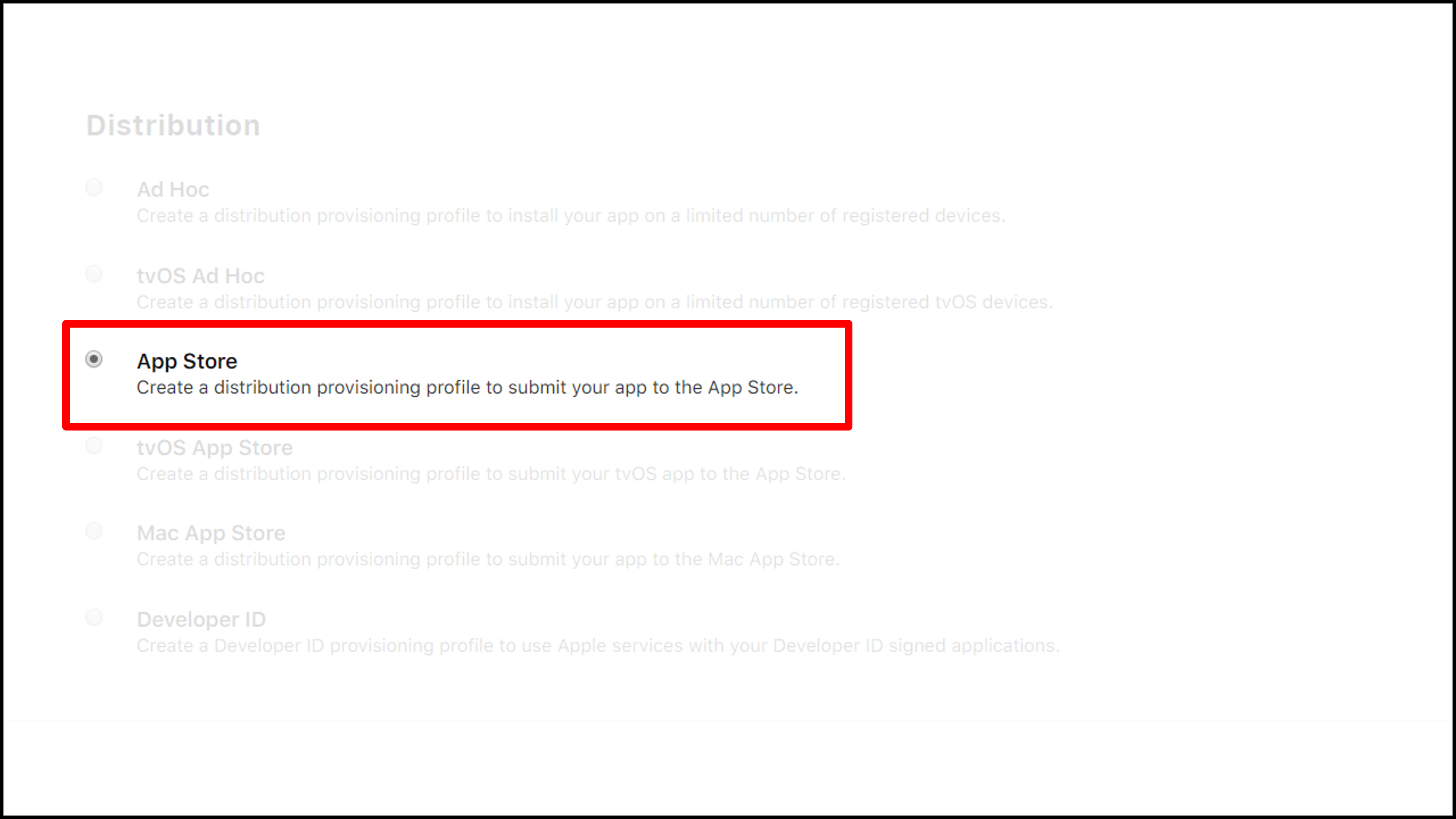 Distribution 항목에서 ‘App Store’ 항목을 선택합니다.