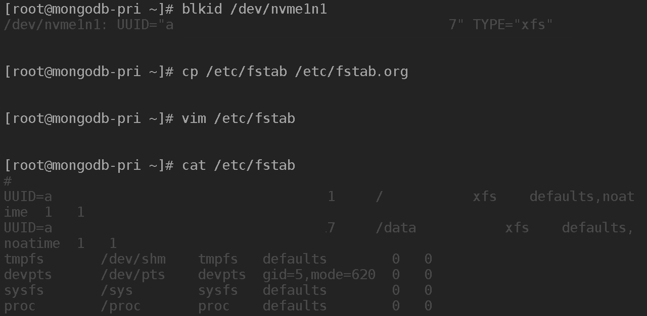 UUID=1234567890 /data xfs defaults,noatime 1 1