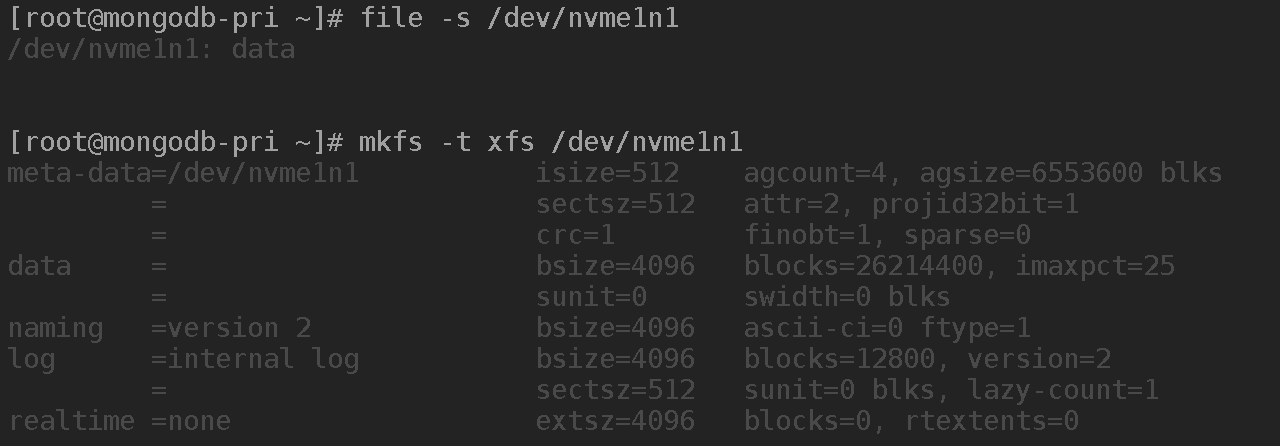 # SGI XFS filesystem data로 표시되면 파일 시스템이 있다는 의미로 마운트만 하면 됩니다.