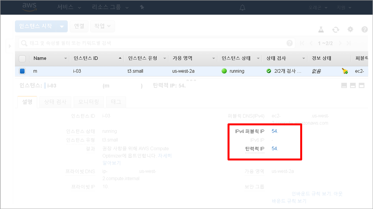 인스턴스에 eip가 정상적으로 할당되어 있는 것을 확인할 수 있습니다.