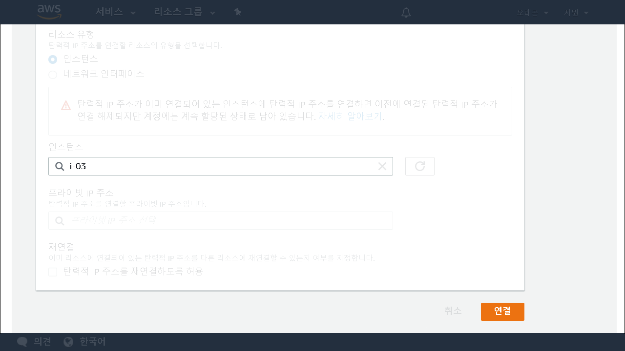 'action → 탄력적 ip 주소 연결'을 선택합니다.