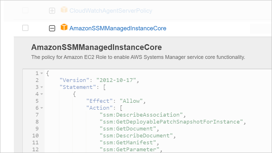 다만, 해당 기능을 이용하기 위해서는 EC2 인스턴스에 'AmzaonSSMManagedInstance' Role이 포함되어 있어야 합니다. SSM 관련 정책은 2가지인데요, 2개 중에서 아무거나 넣어도 됩니다. (활용 범위에 따라서 선택하여 활용하시면 됩니다.)
