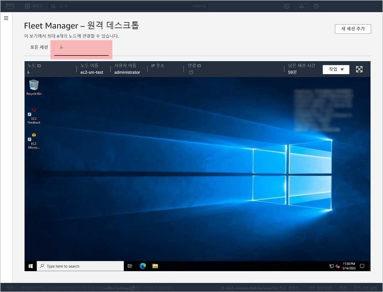해당 화면에서 접속하려는 EC2 인스턴스가 목록에 표시돼야 합니다.