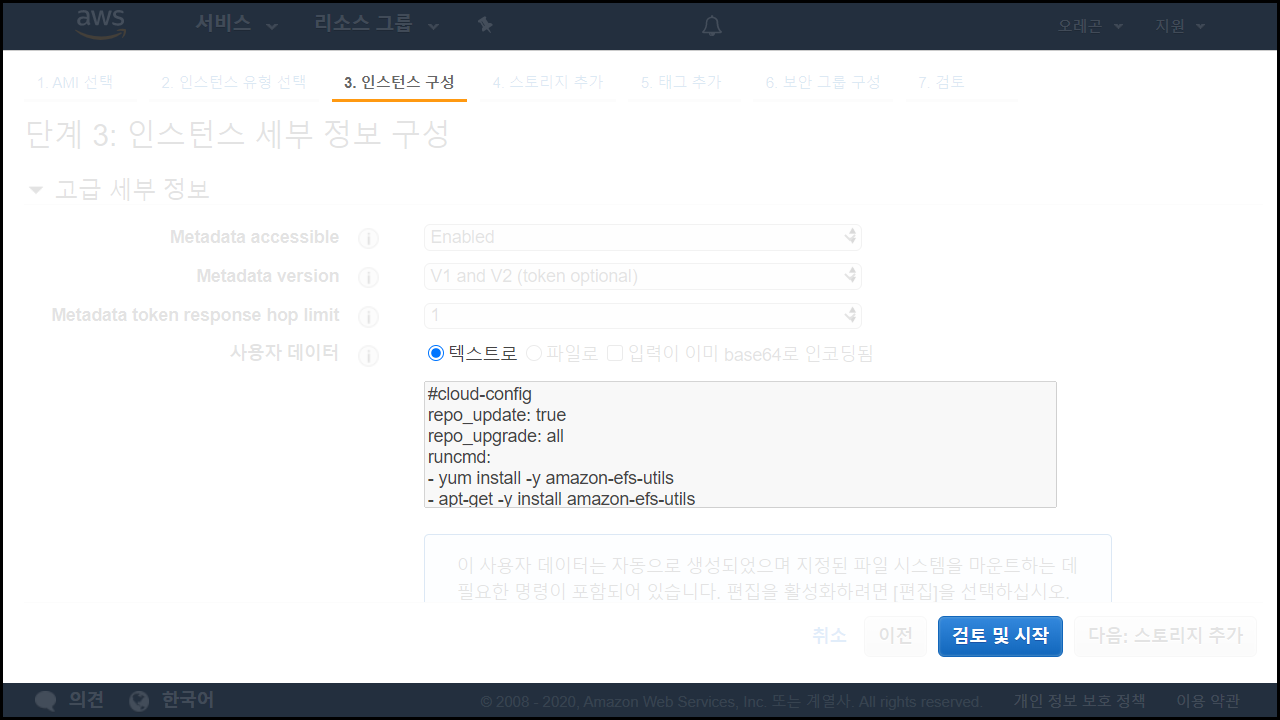 EC2 생성 > 3. 인스턴스 구성 > 고급 세부 정보 > 사용자 데이터 (텍스트로)