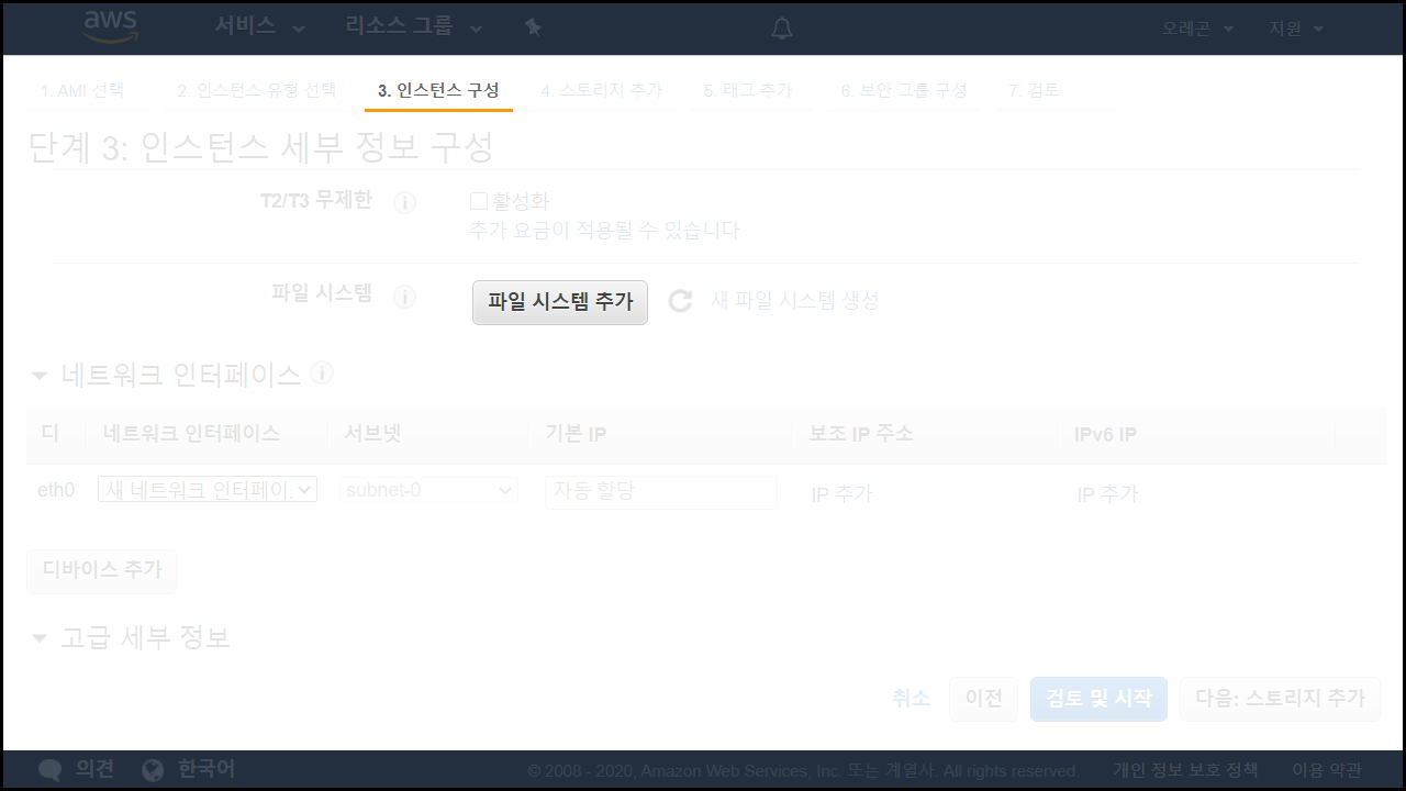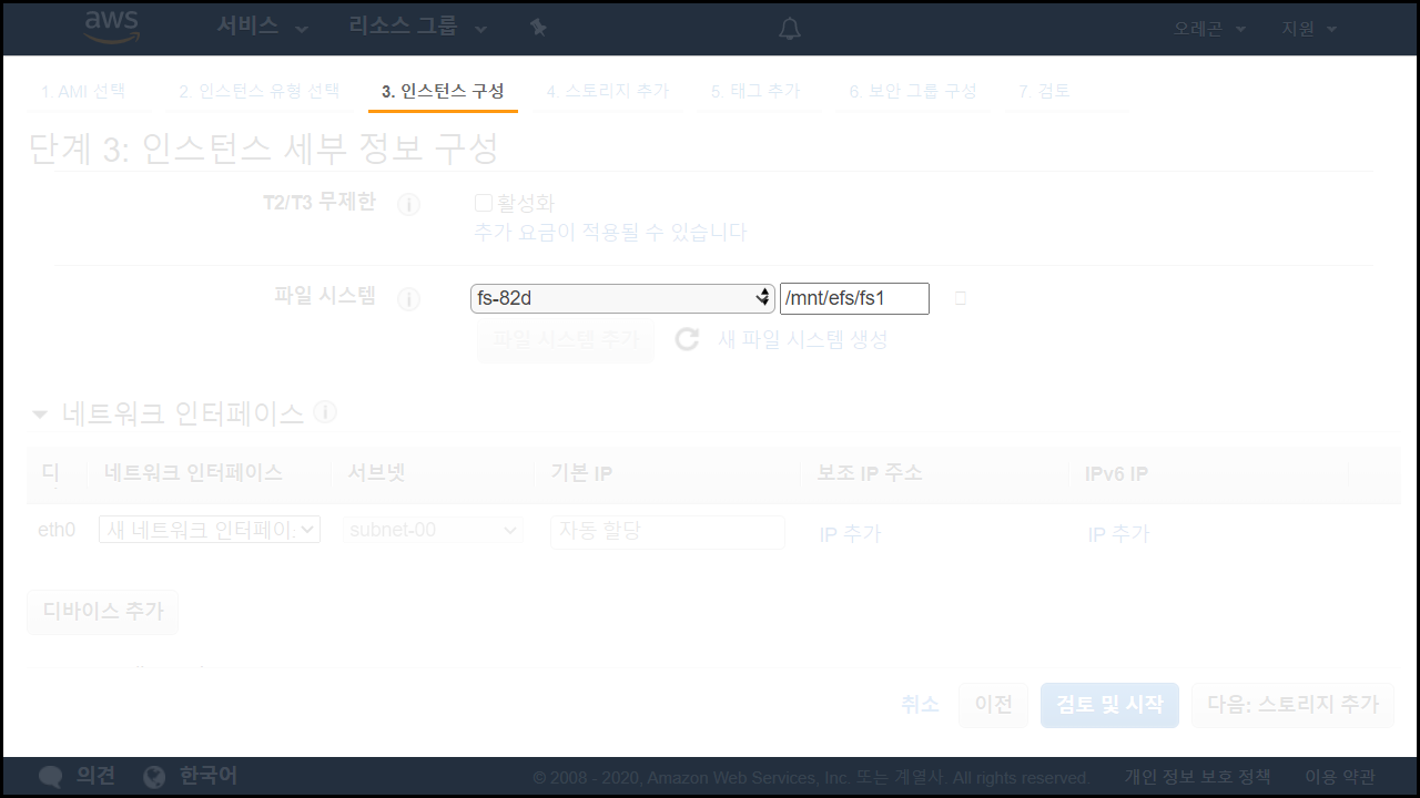 EC2 생성 > 3. 인스턴스 구성 > 파일 시스템 추가