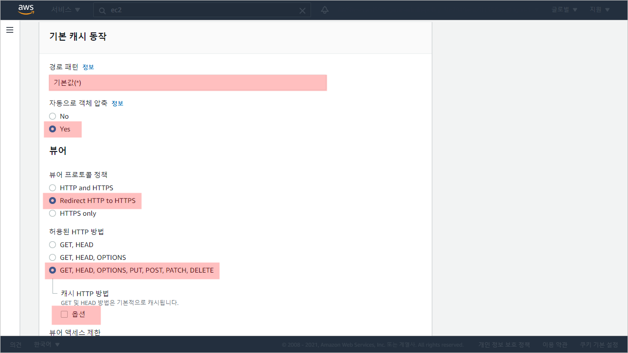 허용된 http 방법 역시 개발자의 취향에 따라 달라지는데요, 보통은 보안을 위해 get, head만 사용하지만, RDS에도 접근하는 등의 다양한 기능이 홈페이지에 포함되는 경우 어떤 메서드를 사용하는지 확인해서 설정하시면 됩니다.
