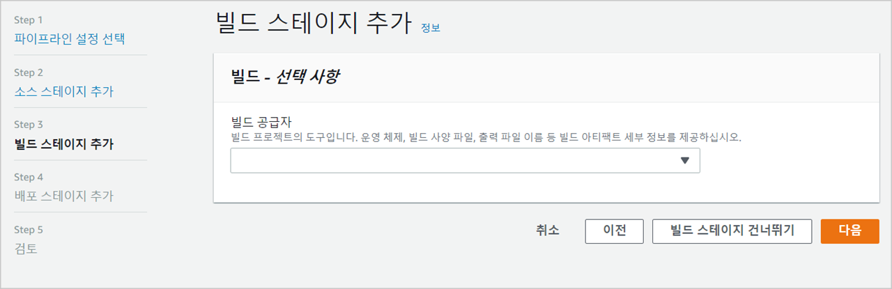 웹페이지 프로젝트면, 빌드 스테이지를 건너뛰어도 됩니다.