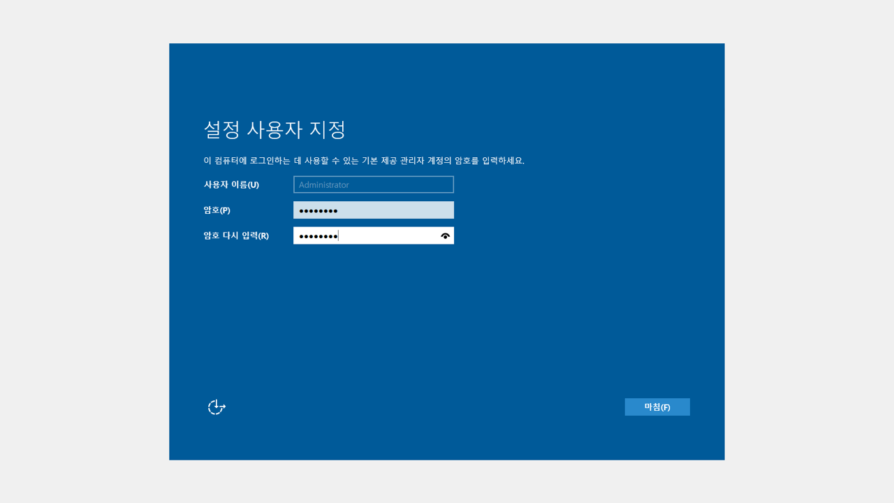 설치가 완료되면 사용자 이름 및 패스워드를 지정하게 되고,