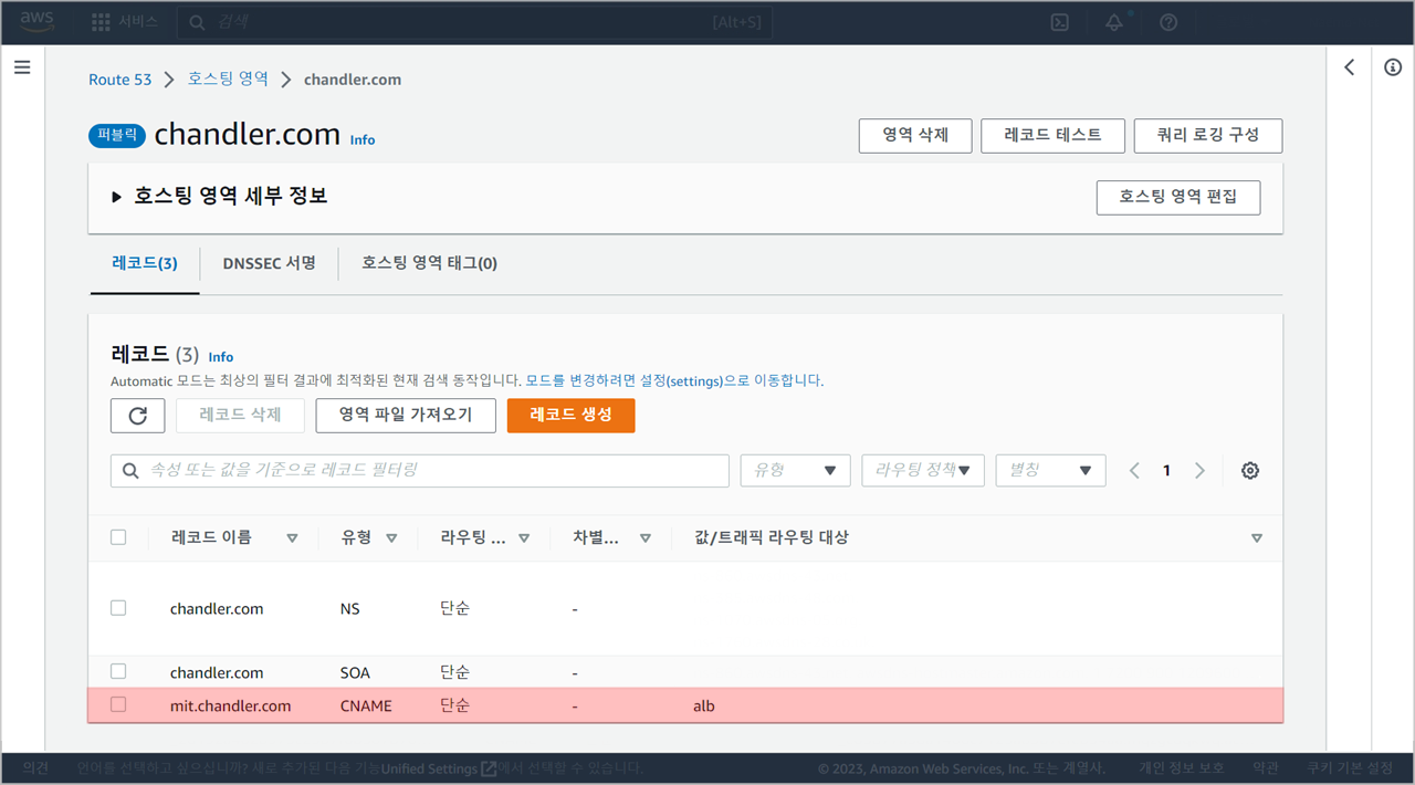 as-is 도메인을 alb 로 전달하는 cname 레코드를 등록합니다.