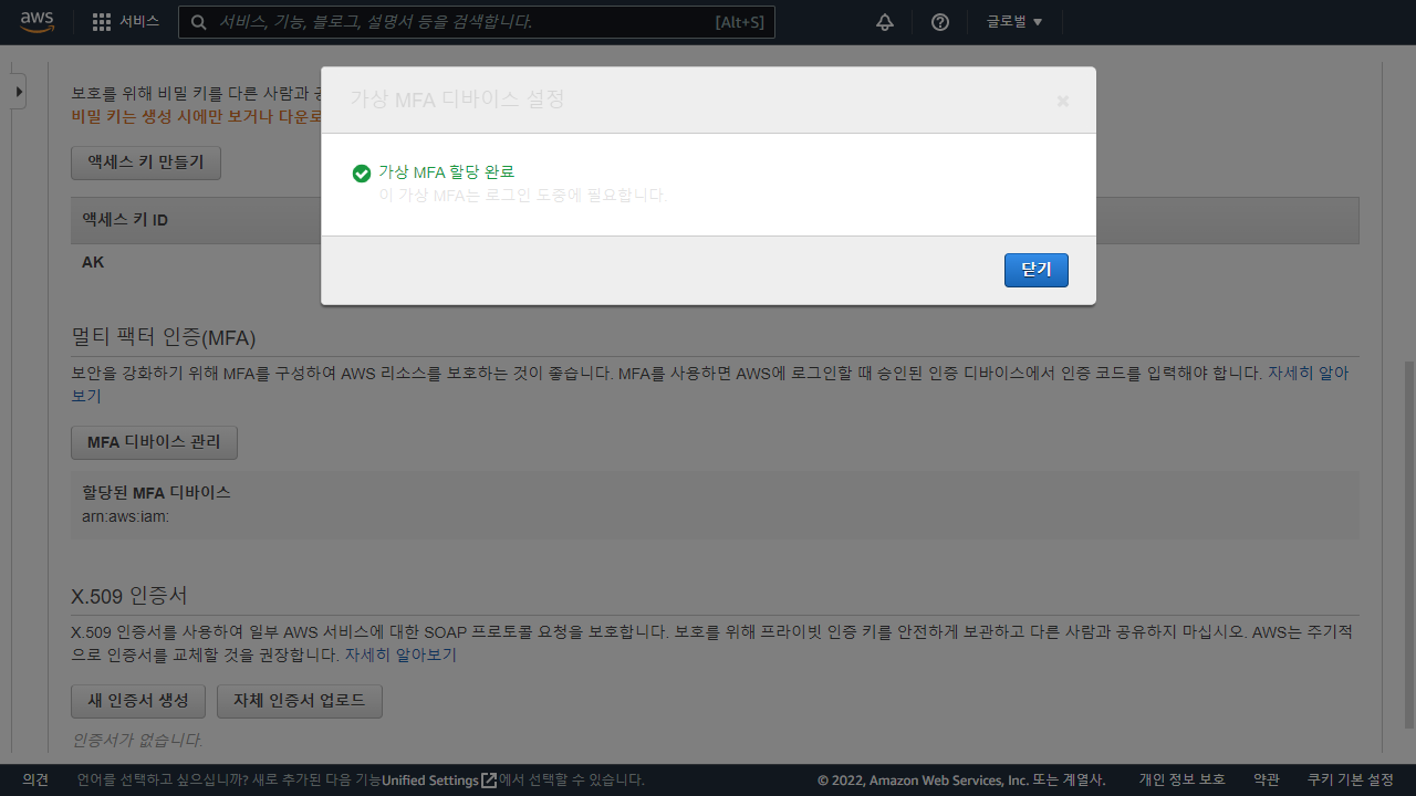 AWS IAM - user mfa 설정