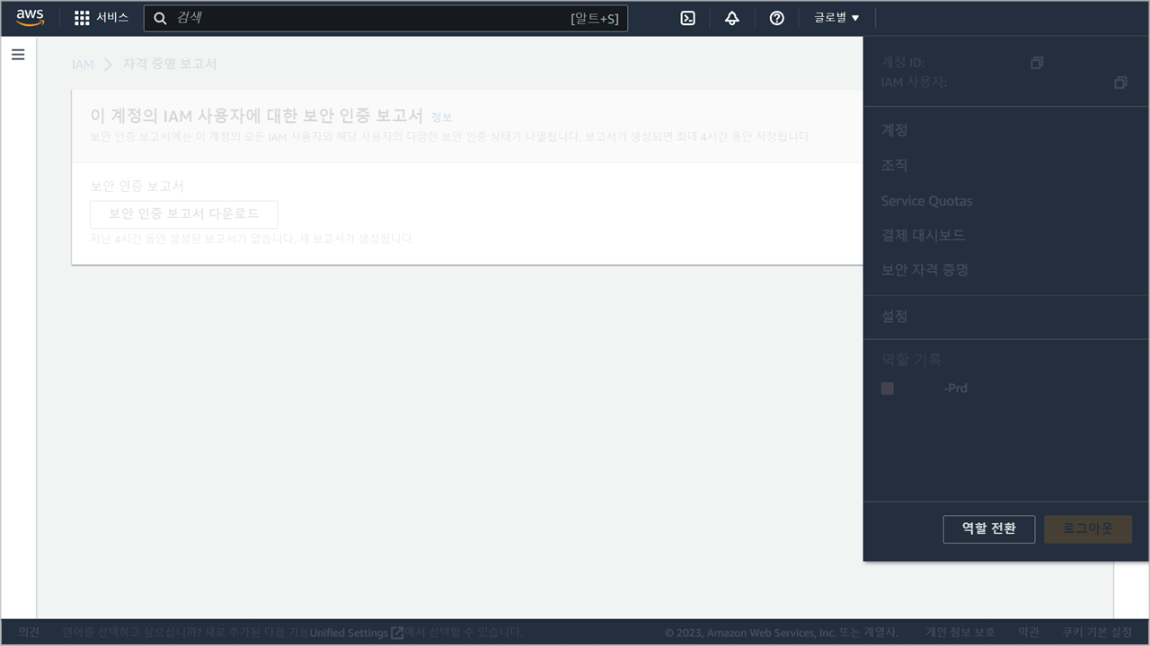 - 계정 : account id 혹은 account alias를 입력합니다.