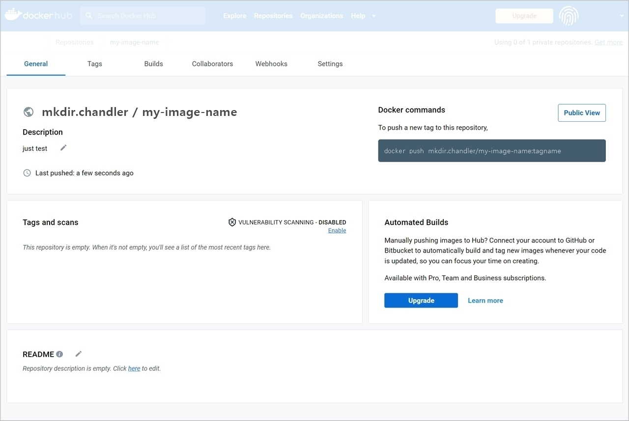 - 바로 아래 Description에는 해당 이미지 저장소 (repository)의 설명을 기입합니다. (옵션)