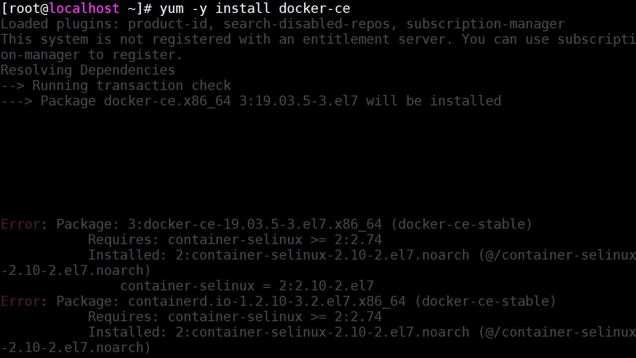 docker를 설치할 때 다음과 같은 오류가 발생하는 경우 대처방법입니다.