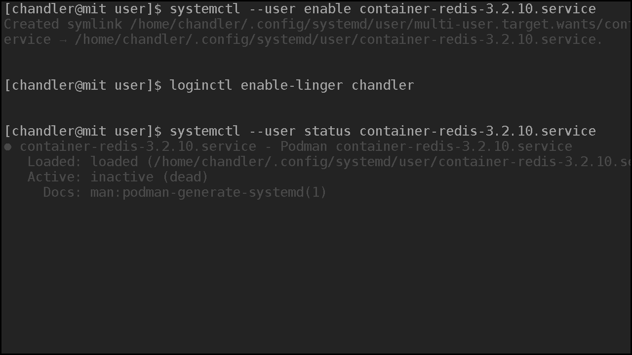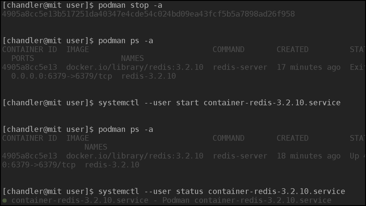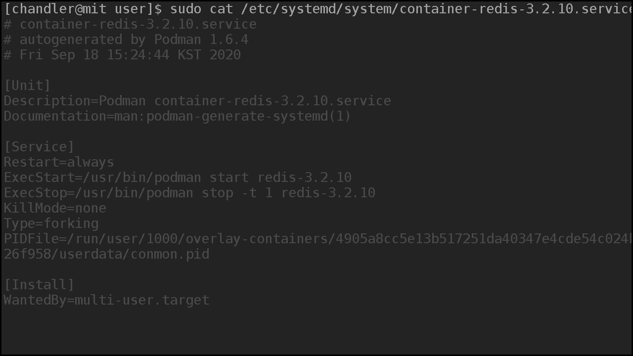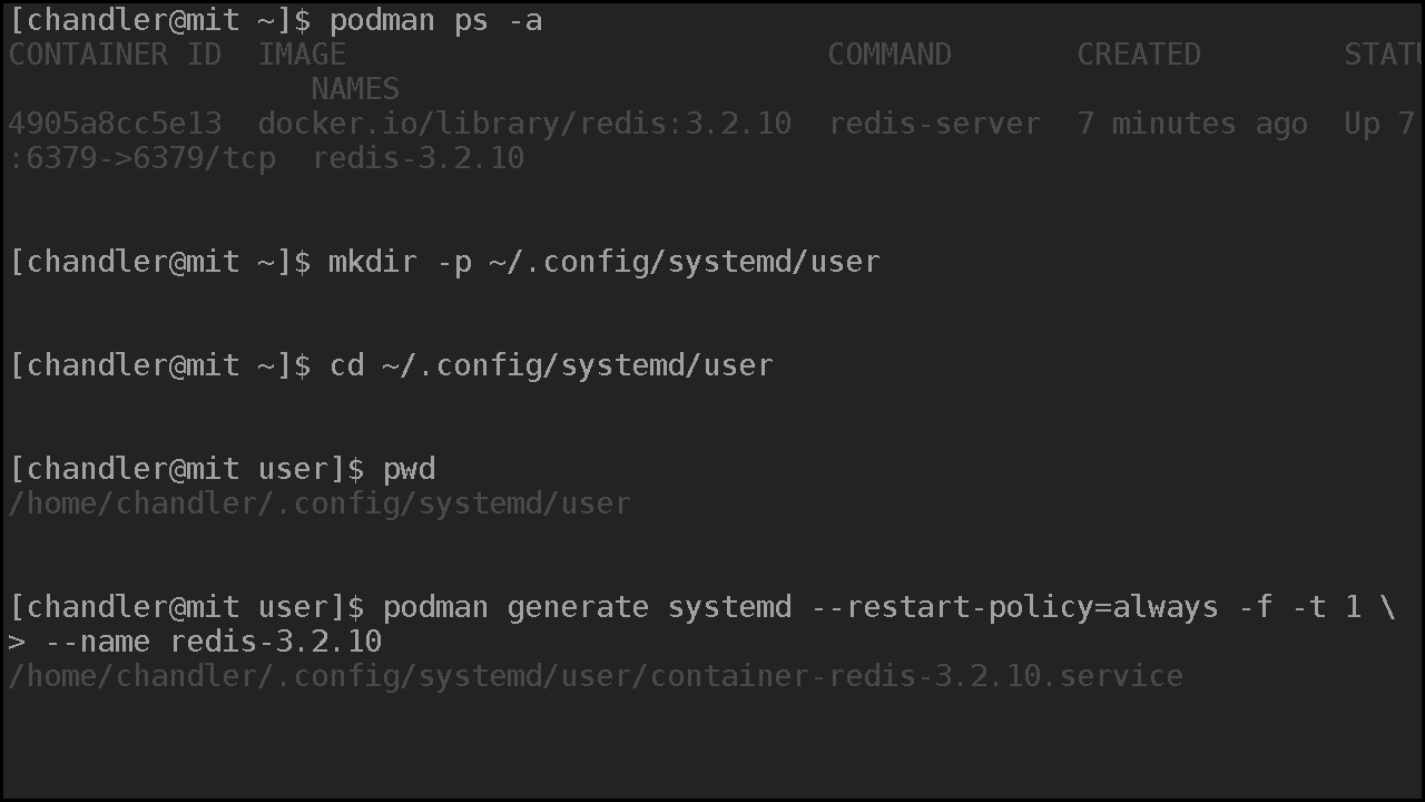 podman generate systemd --restart-policy=always -f -t 1 --name redis-3.2.10