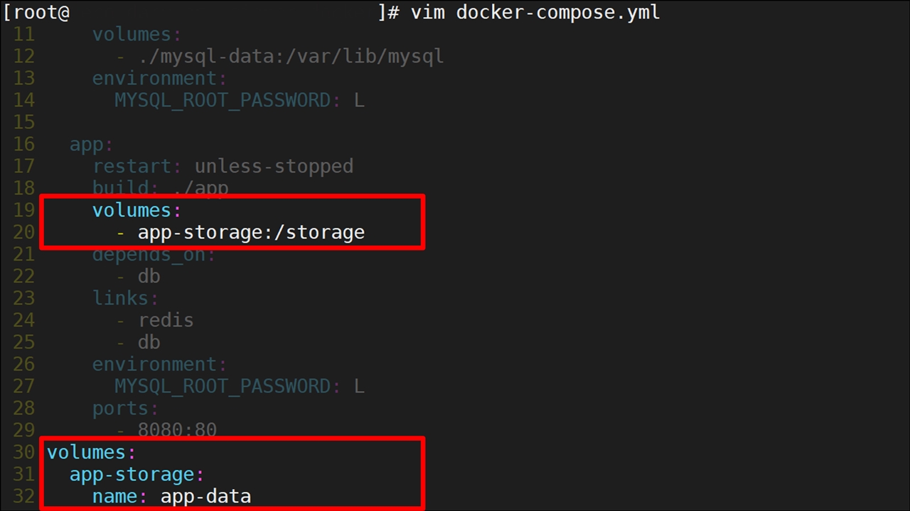 - 아래에 정의되어 있는 볼륨을 사용하는 부분