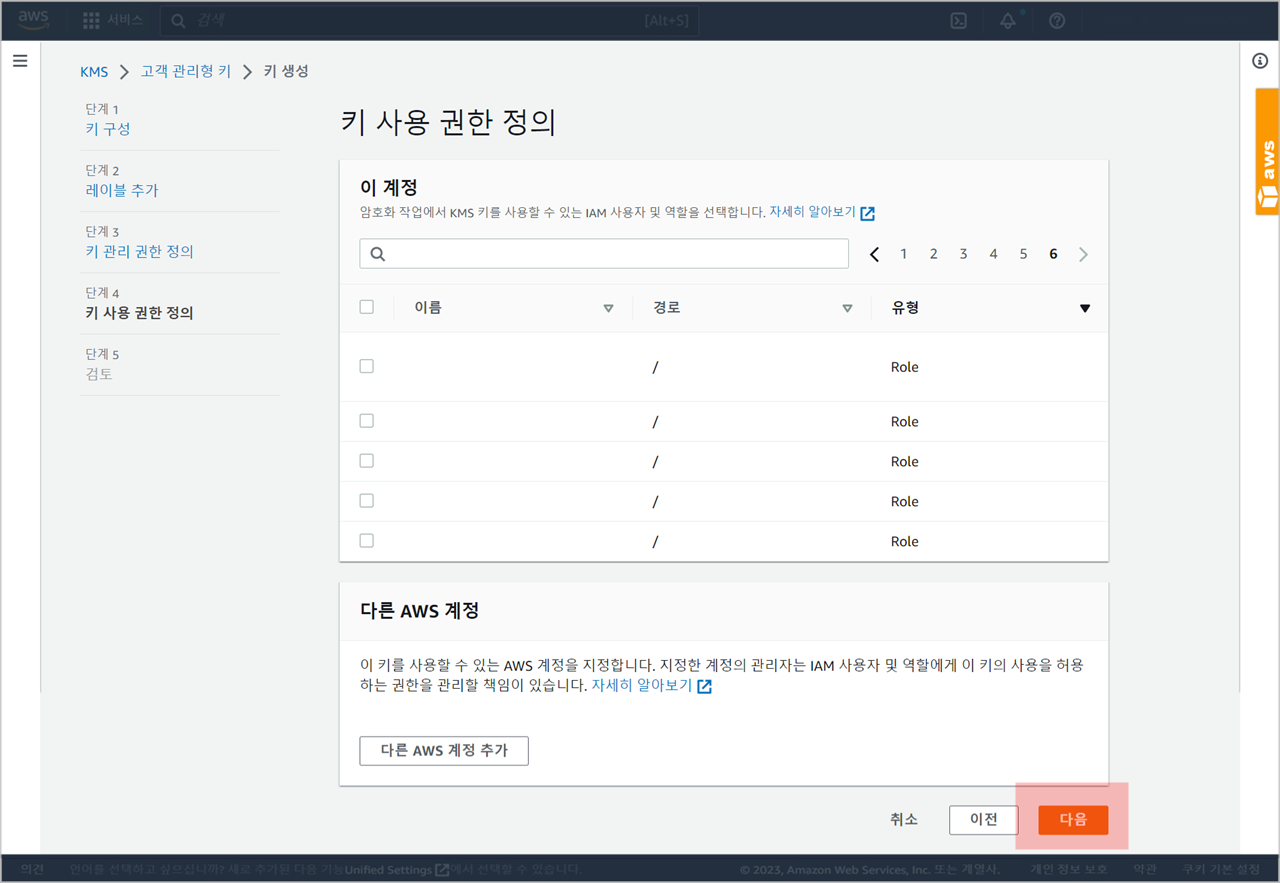 특정 role만 allow 하려면 해당 role을 선택한 다음 ‘다음’을 선택합니다.