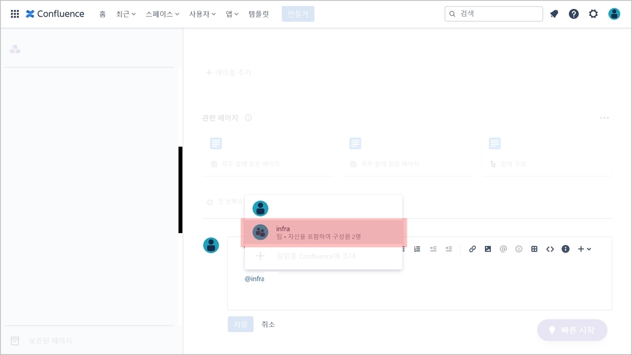 - 팀을 추가하면 멘션을 할 때 팀으로 지정할 수 있습니다.