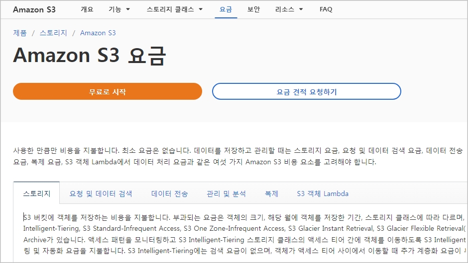 | AWS, Amazon S3 요금 | https://aws.amazon.com/ko/s3/pricing/ | |