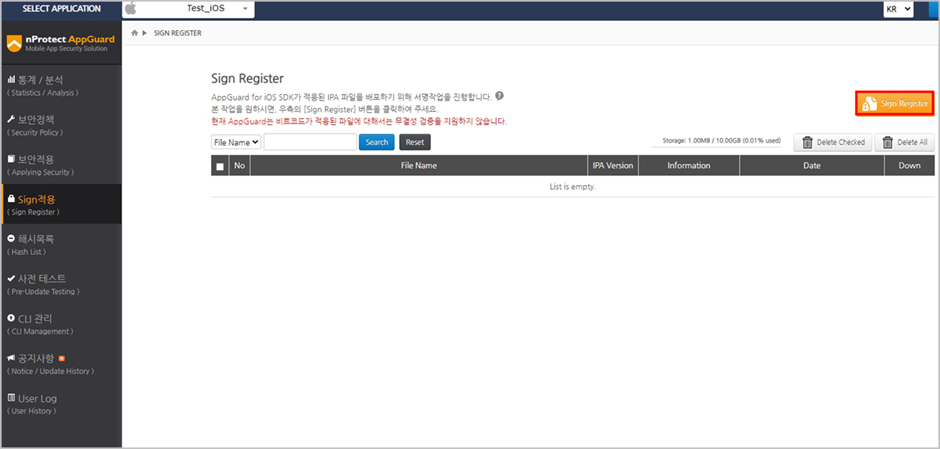 우측에 Sign Register 메뉴를 클릭합니다.