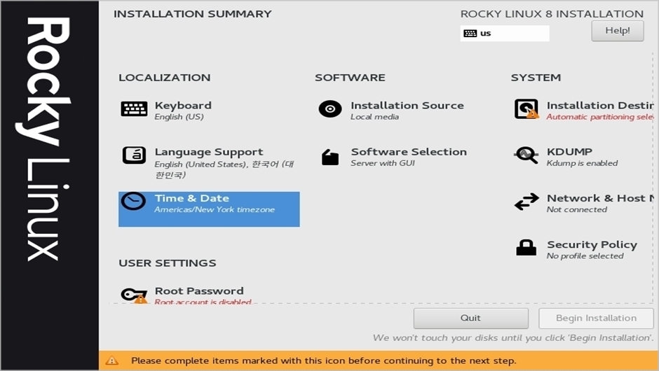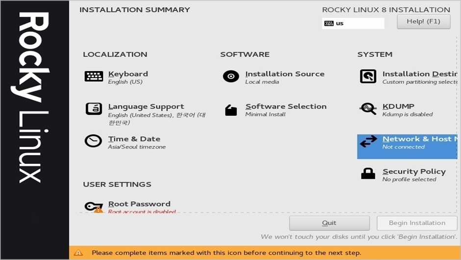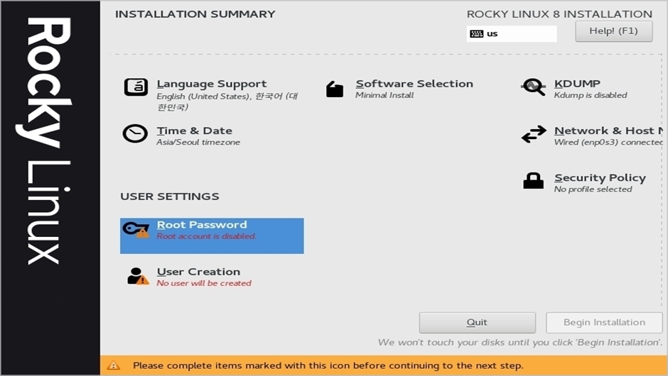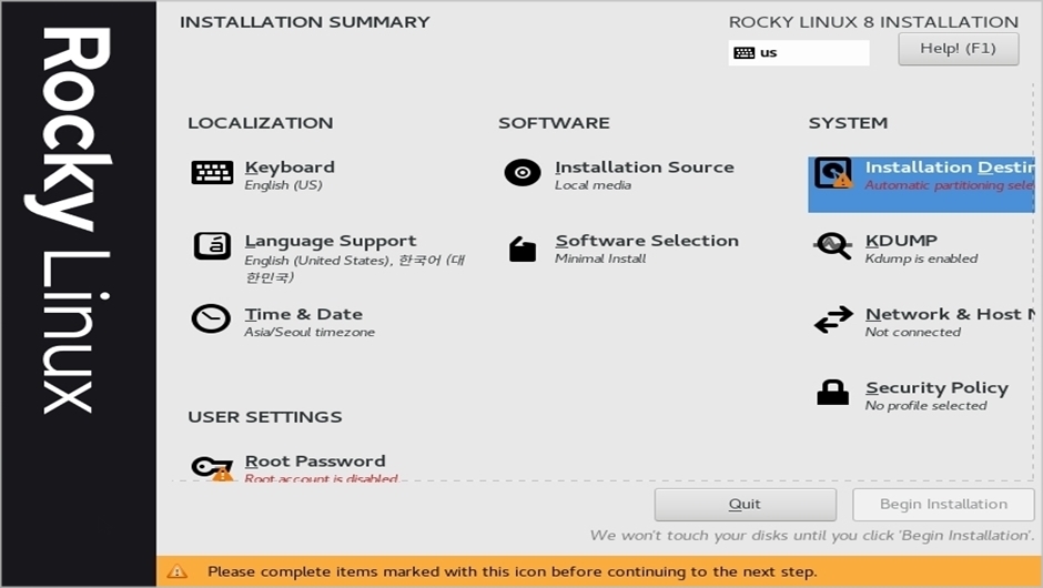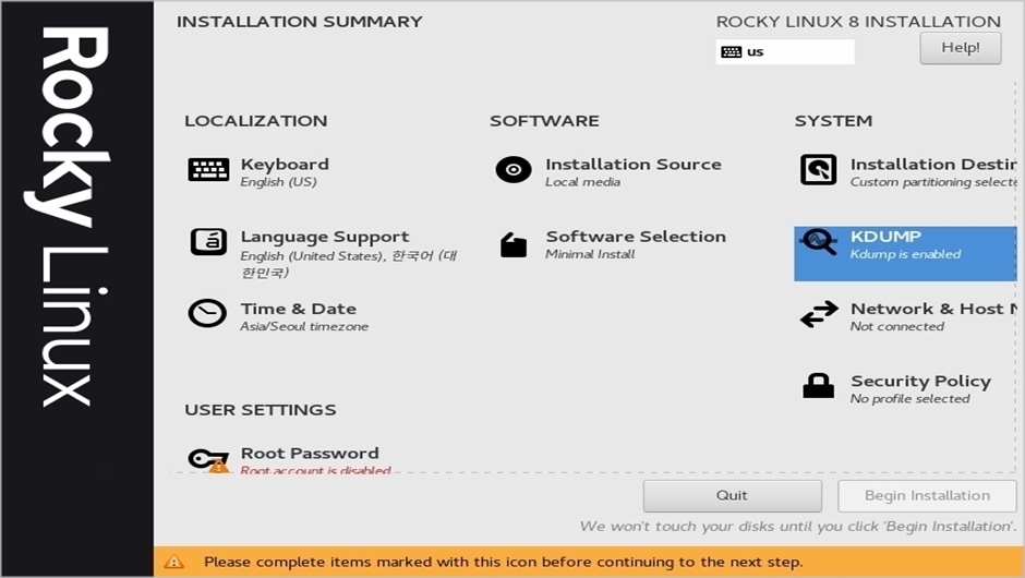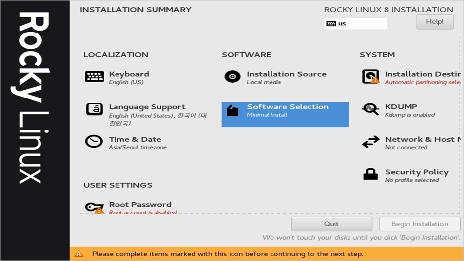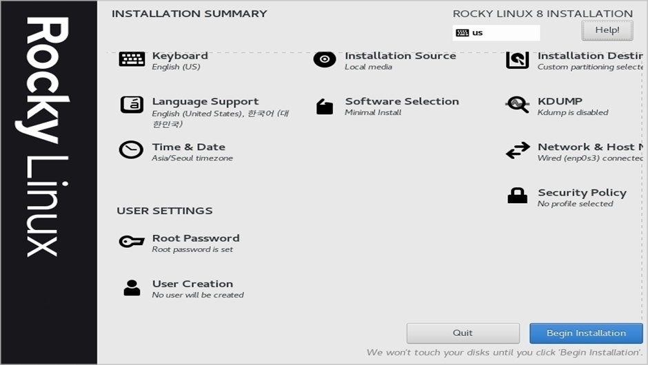 여기까지 진행하면 우측 하단의 'Begin Installation' 버튼이 활성화 되어 있는 것을 확인할 수 있습니다. 바로 선택하면 설치가 시작되는데요,