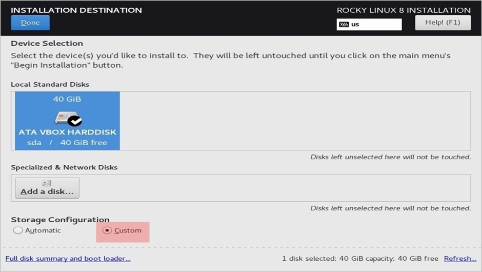 특별한 목적이 있는 것이 아니라면 Disk 선택 화면에서 custom을 선택하고, automatically를 선택하여 진행하면 됩니다.