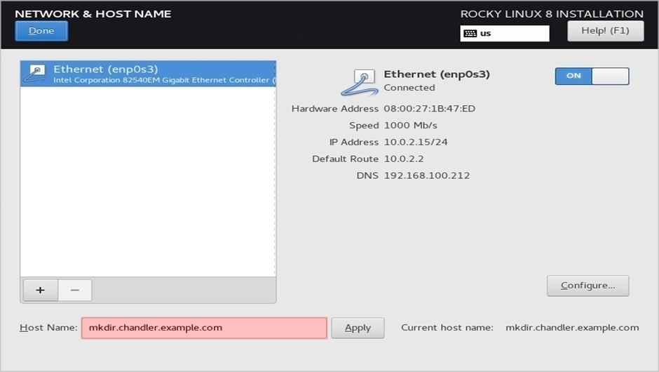 Hostname의 경우 입력한 다음 바로 옆에 있는 Apply 버튼을 클릭해야 적용됩니다.
