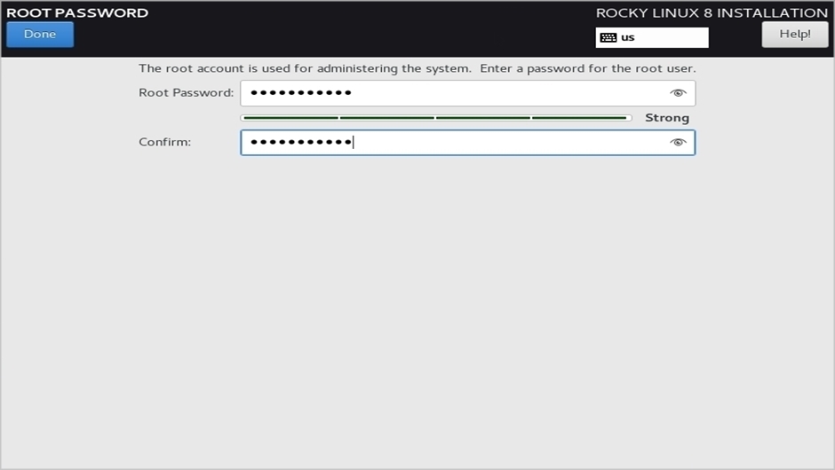 root 계정의 패스워드를 설정하는 메뉴입니다. 입력 완료 후 왼쪽 상단의 Done을 선택합니다.