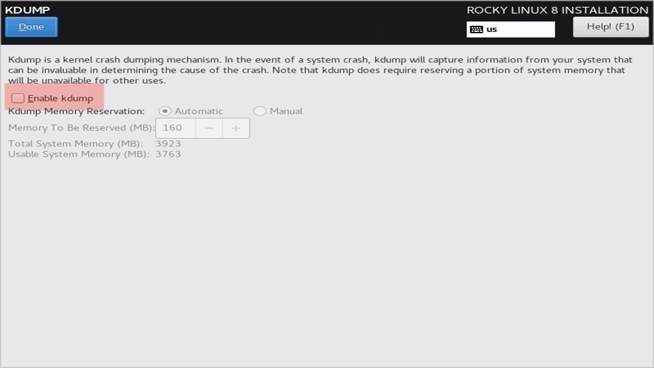 kdump는 선택해도 되고 선택하지 않아도 됩니다.