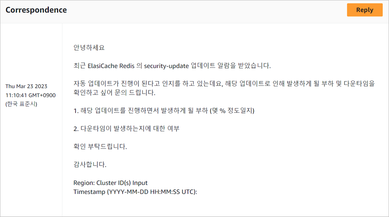 자동으로 업데이트가 진행되기 때문에 부하 및 다운타임에 대한 문의를 case open 했습니다.